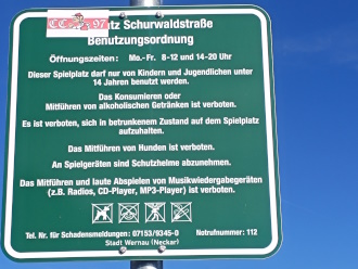 Sicher handelt es sich nur um ein Versehen, wenn der neue Spielplatz auf dem Gelände Adlerstraße Ost III nur von Montag bis Freitag geöffnet ist. Wir haben die Verwaltung gebeten, dies schnellstmöglich zu ändern. Es sollen Kinder zukünftig dort auch an Wochenenden spielen dürfen.